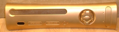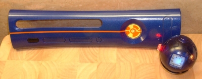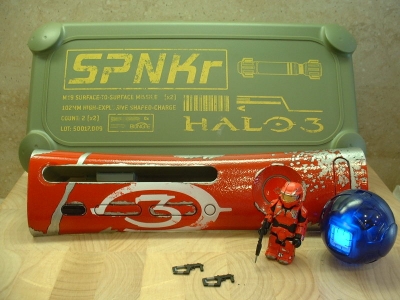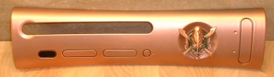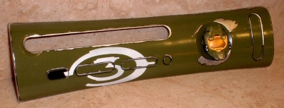 This plate was painted Master Chief green, as close as possible to the color of the Halo 3 SE Console, with a pin/logo of MC's helmet attached to the power button.