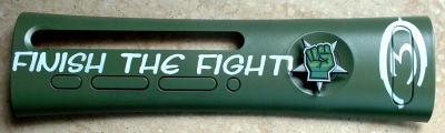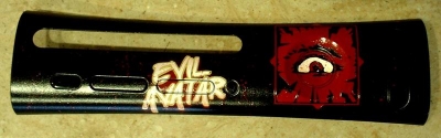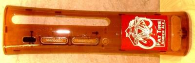 This was the second, improved version of this plate. A clear plate was used as a base and painted blue towards one end.