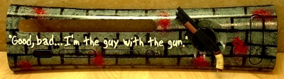 A quote by Ash from the movie Evil Dead, along with his trademark weapon of choice that isn't a chainsaw.