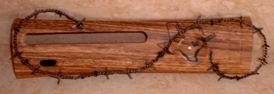 Logo is from an unknown rock band. Crypt... something. Sorry. :) Plate is silver, gray and black and looks like metal.
