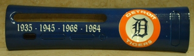 Detroit Tigers team logo and colors, and the years they won the World Series.