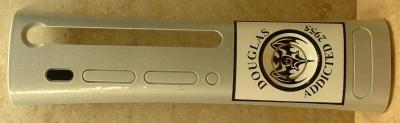 The plate resembles his head with the power button his eye. The little figure attached was a promotional figure from San Diego Comic-Con 2007 and hard to find.