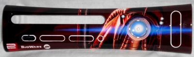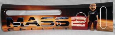 this is a custom printed plate created by SpaceGhost2K using his avatar over a Mass Effect 2 background.