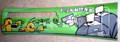 This is a plate designed by XBA member SpaceGhost2K, and professionally printed by Faceplate Addict. The plate was signed at PAX 2010 by Dan Paladin, Behemoth artist for Alien Hominid and Castle Crashers.