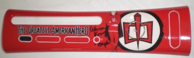 This is a custom printed faceplate featuring William Katt as Ralph Hinkley, aka the Greatest American Hero. It was signed by Mr. Katt in January, 2011.