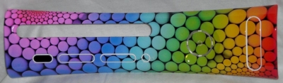 This is a custom printed faceplate with a fractal image of rainbow colored balls in a variety of sizes.