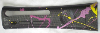 This is a custom painted plate featuring the Bayonetta logo, and a three dimensional paint applied in curves to resemble Bayonetta's hair, which she uses as a weapon.