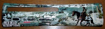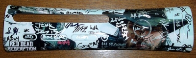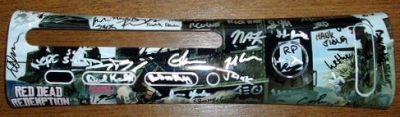 This is a custom printed plate designed by Xbox Addict member SpaceGhost2K.It was signed by members of the development team at Rockstar San Diego.