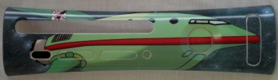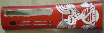 This is a custom designed by SpaceGhost2K and professionally printed by ImageWare. IT is made from a promotional image made for the game, with the Mirror's Edge logo printed onto the USB door. This is very similar to a custom plate made by XBA member hellonearth159 except that this one is printed directly onto the plate and 159's version was made using decals and computer printing.