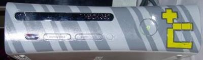 We have a series of thirty plates in our database that were on display in the Xbox 360 Lounge in Japan from the launch in November, 2005 until January of 2006. Most of these plates were designed by various Japanese celebrities. This plate was designed by Japanese DJ and comedian, Rocketman.